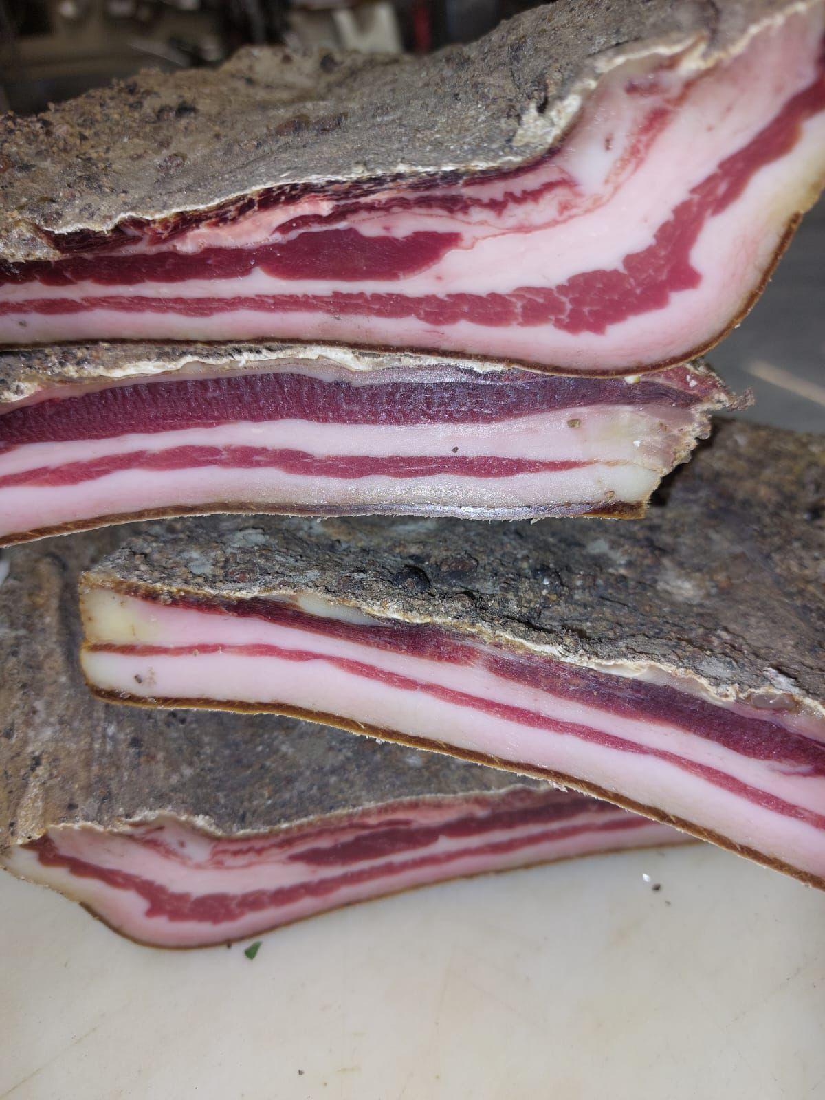 Unser Bauchspeck reift 10 Monate und ist besonders zart – mit einem perfekten Verhältnis von Fleisch und Fett, das für den besten Geschmack sorgt.